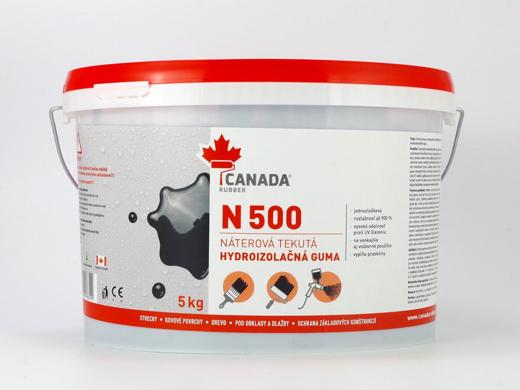 Vynikajúca priľnavosť a elasticita produktu Canada Rubber N500 dovoľuje získať trvalú vrstvu, ktorá dokonale prilieha ku všetkým bežným druhom stavebných povrchov a pracuje spolu s nimi. Netreba sa obávať, žeby sa materiál odlepil, zošúveril alebo praskol. Ani po mnohých rokoch, pokiaľ na neho nevplývajú iné statické faktory. Materiál Canada Rubber N500 prenikne do každej trhlinky a dôkladne vyplní spoje všetkých materiálov. Je odolný voči UV žiareniu, vďaka čomu sa môže použiť aj ako do vonkajších priestorov, tak aj do vnútorných priestorov budov bez rizika poškodenia mrazom alebo slnkom.