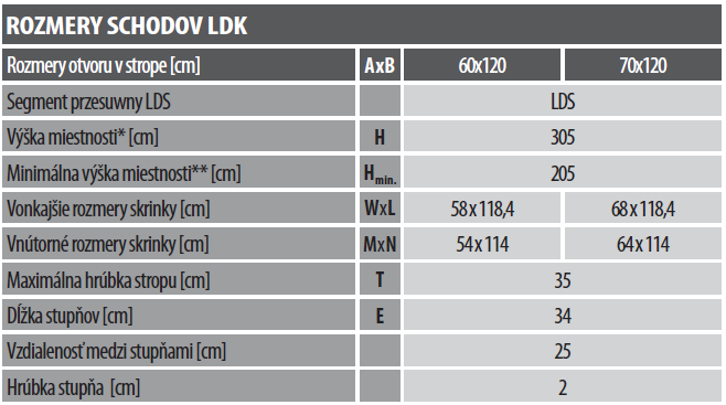 Podkrovné schody Fakro LDK sú dvojsegmentové výsuvné schody s mechanizmom posúvania dolného dielu, čo umožňuje minimalizovať priestor potrebný na ich rozloženie.